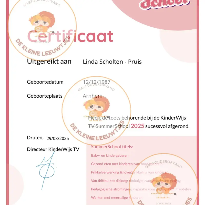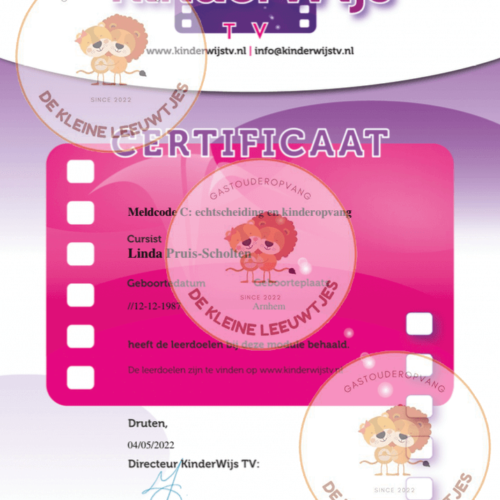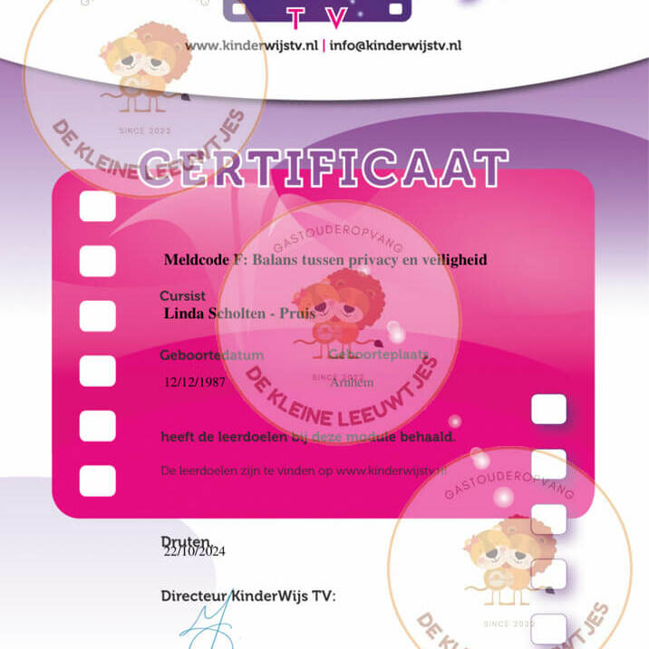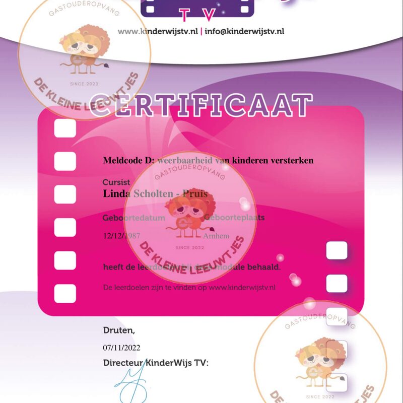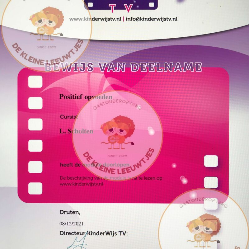 - Cursus “Positief opvoeden”, behaald op 08.12.2021.