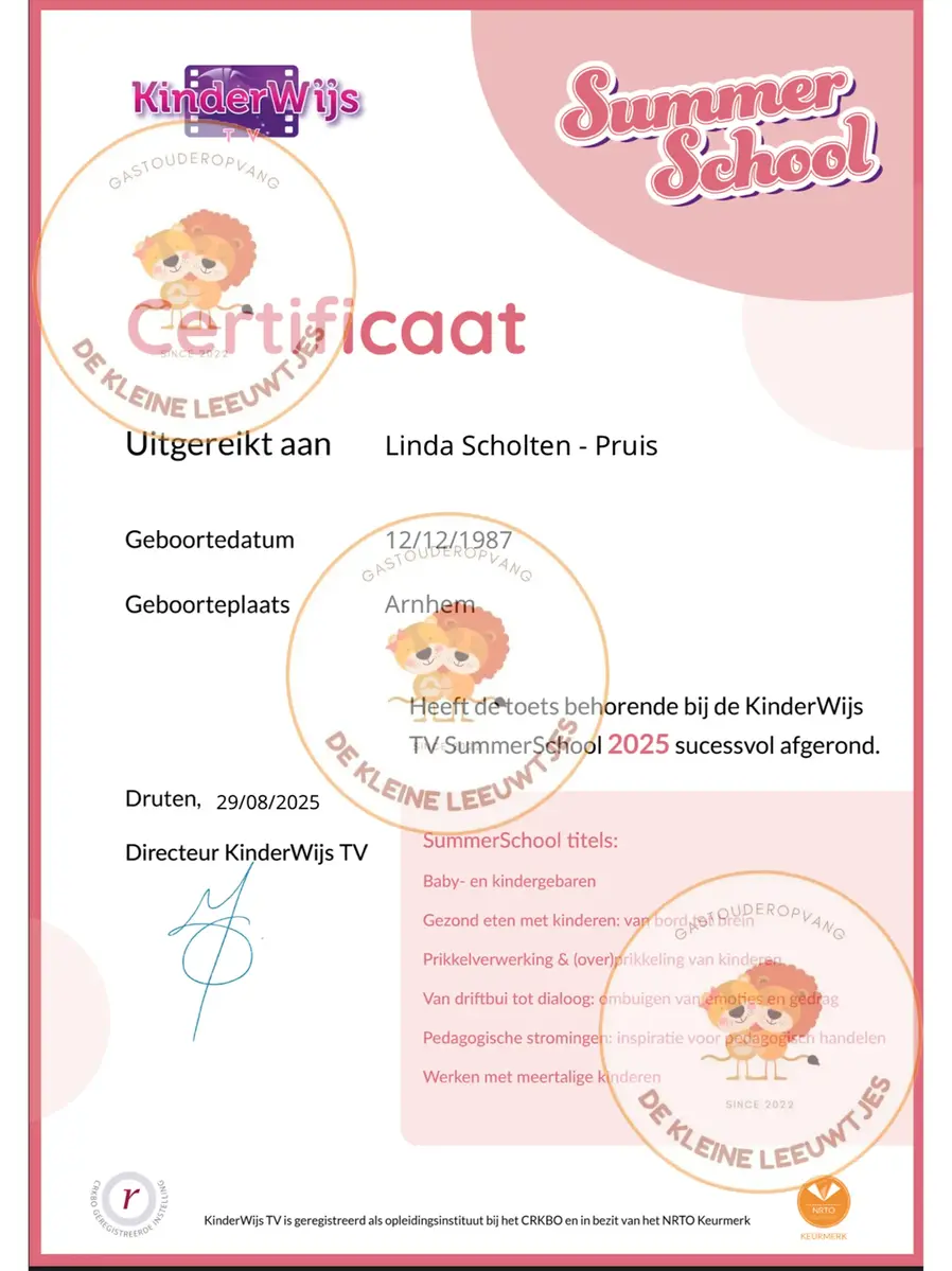 Hierin staan ook nog eventjes de huisregels in vermeld van “Gastouderopvang De Kleine Leeuwtjes”.
